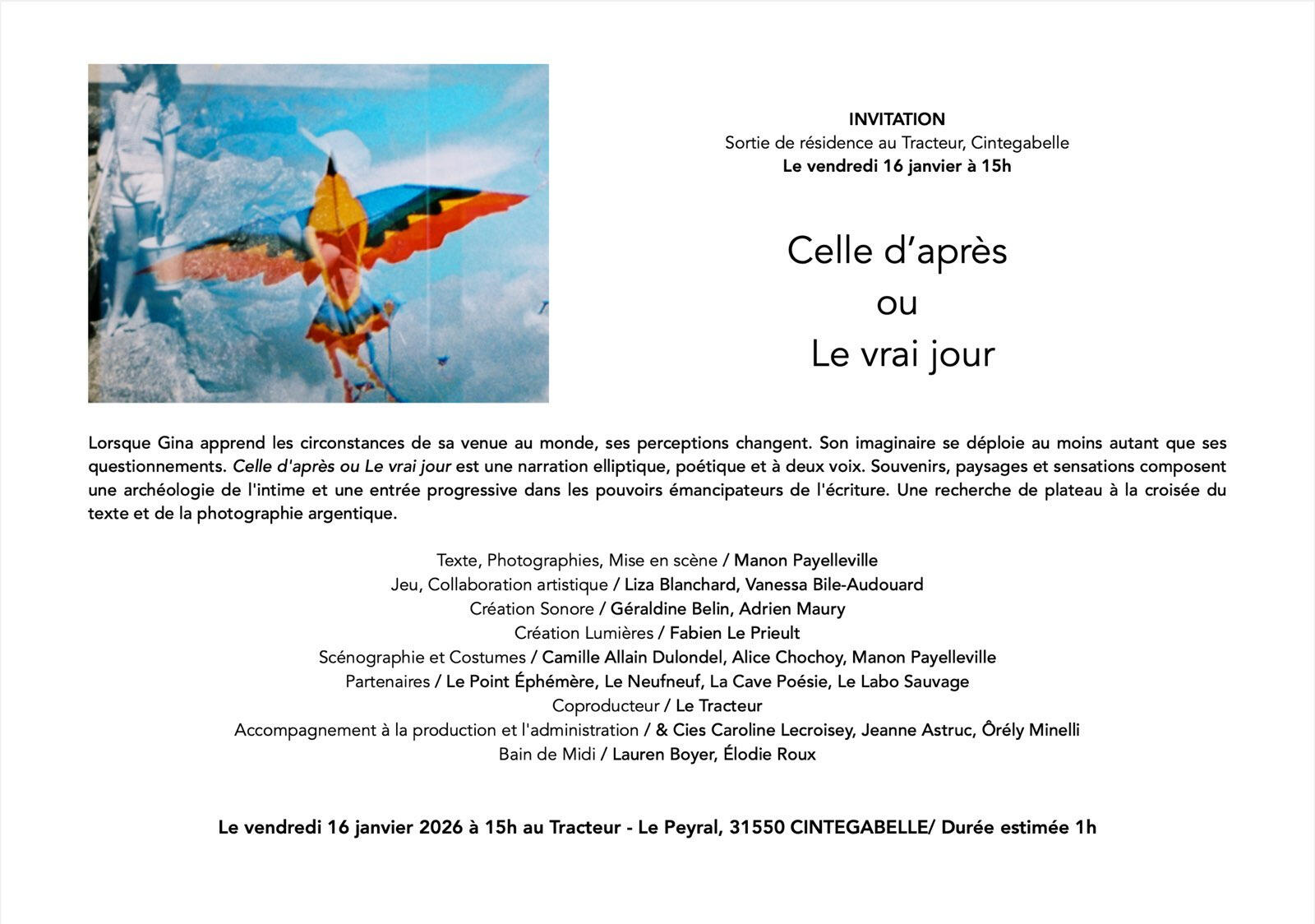 - 3 semaines de résidence de création au Tracteur ;